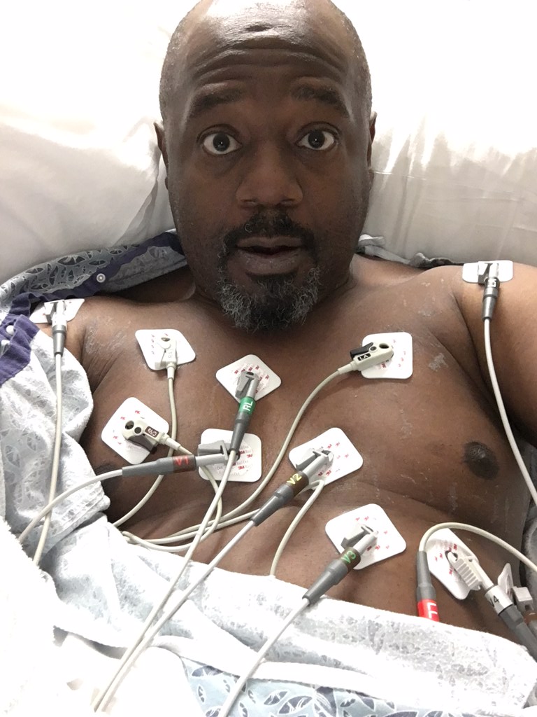 Needless, to say, I was sent home for the day. The situation was worse by the time I got home. I drove myself to urgent care down the street, and when she took my blood pressure, the nurse freaked. “220 over 180! You need to go to the hospital right now!” An ambulance was called, but my niece and her bae got there quicker. They rushed me to a Mid City emergency room and I was admitted immediately. The preliminary EKGs were abnormal… and they said I had the symptoms of a heart attack.