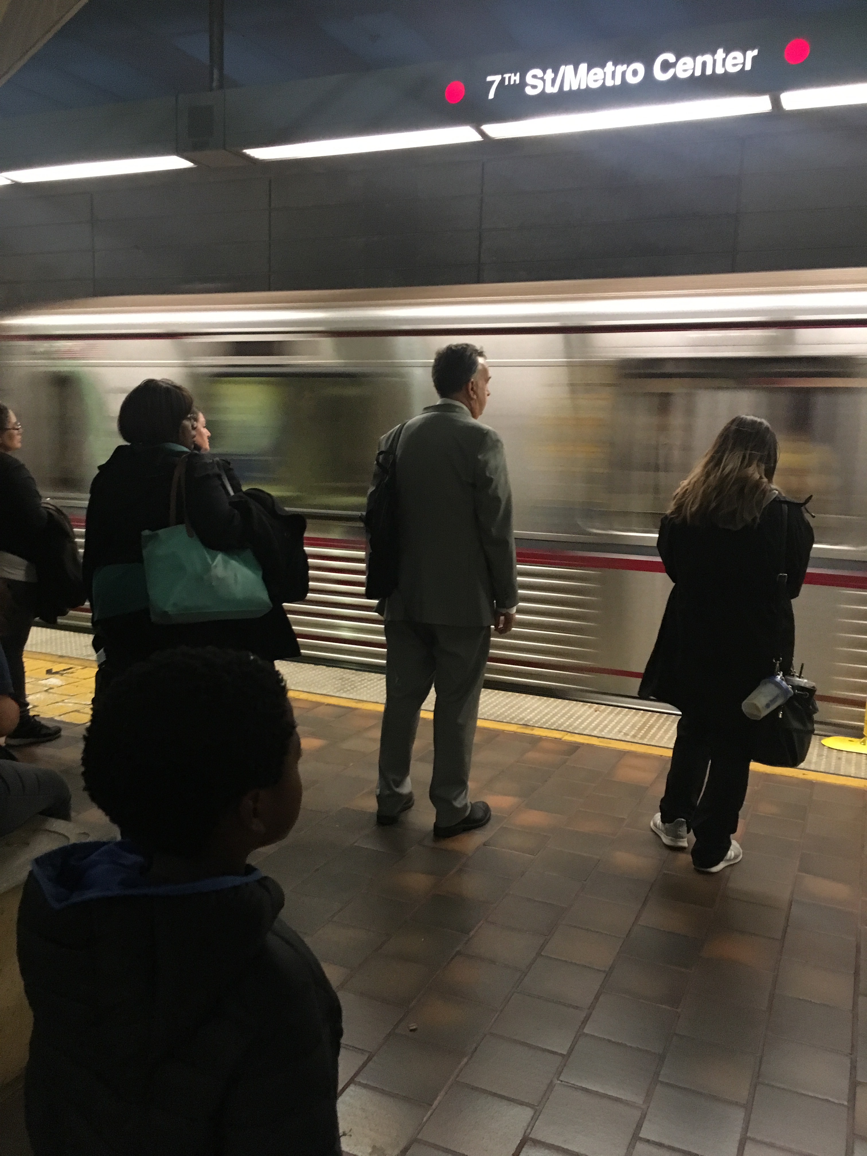 We rode the Expo Line to 7th Street Metro Station, then hopped the Red Line to Union Station. We had to walk outside and catch the Silver Line, which we rode to Pico Station, where we hopped back onto the Expo Line just to go back to Union Station!
