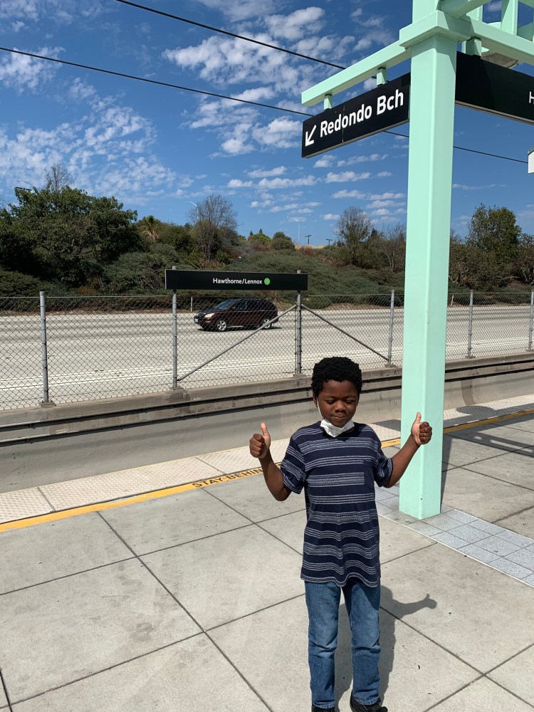 We took the 740 Rapid to Lennox Station. We took the elevator down to the platform that sits between the divide of the 105 freeway. We took the Green Line south to Redondo Station, the end of the line. We chilled there, then ran the whole trip back. 🥵